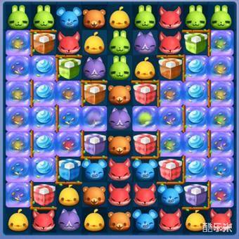 2、棋盘上有大量随机宝箱,通过消除棋盘上方也会掉落随机宝箱。这些随机宝箱可以与同颜色的棋子匹配消除,消除后有概率获得各种特殊棋子。所以有机会还需尽量消除这些随机宝箱,利用其中获取的特殊棋子,可以加速我们消除果冻的速度。