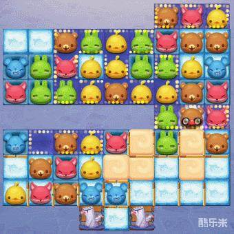 2、棋盘下方区域的可消栅栏数量非常多,且其内还有奶油存在。我们想要消除奶油,需要先消除可消栅栏,而奶油的扩散并不受可消栅栏影响。由于可消栅栏还会挡住棋子的下落,所以我们在消除汉堡后,最重要的是消除可消栅栏。