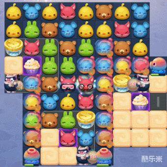 2、奶油蛋糕和章鱼,均会每步在棋盘中增加障碍物,影响我们匹配消除。由于没有大炮存在,奶油蛋糕无法消除,而章鱼又很难消除。所以我们需要尽量消除泡泡或奶油,控制奶油蛋糕和章鱼的行动能力,才能更稳定的进行金币收集。