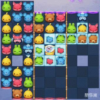 3、本关的步数并不多,想要在有限的步数内完成收集任务,我们还必须多多制造特殊棋子,并尽量将它们组合使用。利用特效组合的大范围消除,无论是消除雪堆,还是消除爱斯基摩猪,都能变得更加轻松,让我们在更少的步数内完成收集任务。