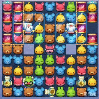 3、本关的步数并不多,在大炮旁边消除棋子的时候,我们还要尽量制造特殊棋子,并将它们进行组合使用。利用特效组合的大范围消除,无论是为大炮蓄能,还是直接消除烟花筒旁边的棋子,都能显得更加轻松,让我们更快的通过关卡。