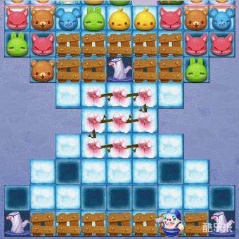3、在棋盘下移后,有大量樱花挡住了棋子的掉落,我们无法收集棋盘最下方的樱花树。不过这些樱花都连着一根枝条上,只要集中消除一朵,就能将所有樱花消除。此外,想要三星通过关卡,在整个闯关的过程中,都要多多制造特效组合,不仅可以更快的消除障碍物,还能让我们获得更多的消除分数哦。