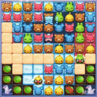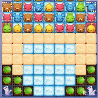 2、棋盘下移后,2棵樱花树分别在棋盘左下角和右下角,外围有大量的汉堡和奶油障碍物。而汉堡和奶油障碍物覆盖下,还存在玻璃或雪块,想要扩散灯光地面非常的困难,所以奶油和汉堡这个时候要优先消除。如此,不仅可以更有效率的消除它们覆盖下的障碍物,还能扩大我们的消除匹配空间。