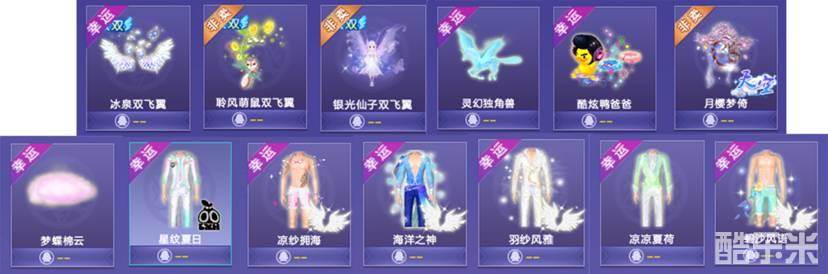 在7月21日18点-8月4日17点59分更新的多宝八音奖池里,将有大量的非卖坐骑、翅膀、套装等你抱走!其中有深受喜爱的坐骑月樱梦倚、灵幻独角兽、酷炫鸭爸爸,经典双飞冰泉双飞翼、聆风萌鼠双飞翼、银光仙子双飞翼,粉色浮云梦蝶棉云,以及非卖服饰海洋之神、凉凉夏荷等多款热门道具!