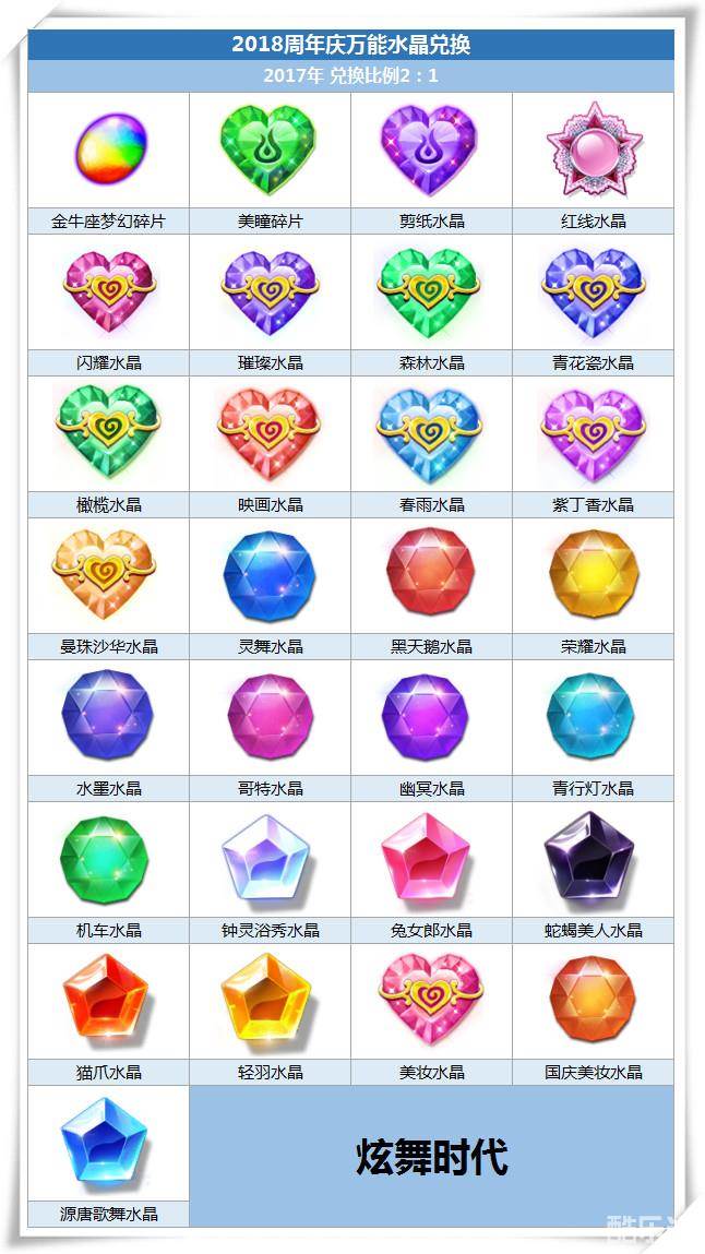 (2017年已产出礼包水晶<不含灵器礼包>2:1兑换万能水晶,2018年已产出礼包水晶(不含灵器礼包),可在魔法屋1:1兑换万能水晶。)