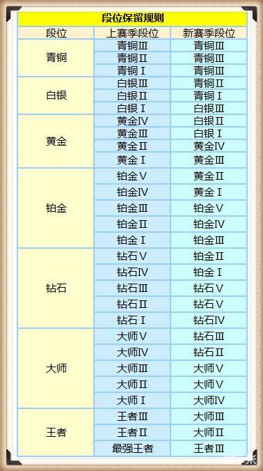 在S6赛季中,段位继承规则跟往季相同,将会在S5赛季的基础上按照规则进行继承。例如,在S5赛季黄金Ⅲ的玩家将会在S6赛季中继承白银Ⅰ的段位,让玩家上分更轻松!