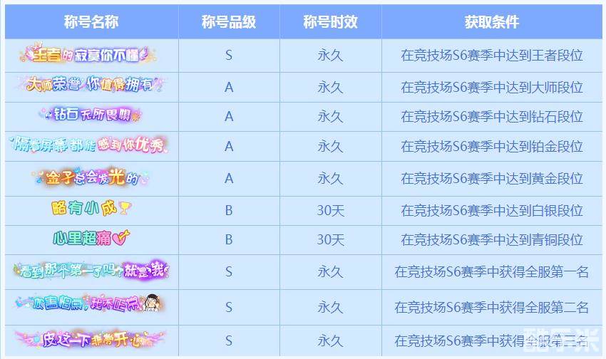 S6赛季更新段位称号,黄金及黄金以上的段位称号是永久的哦!这么有趣的称号你真的不考虑pick一下吗?头上顶着这样的称号,我隔着屏幕都能感觉到你很优秀啊!