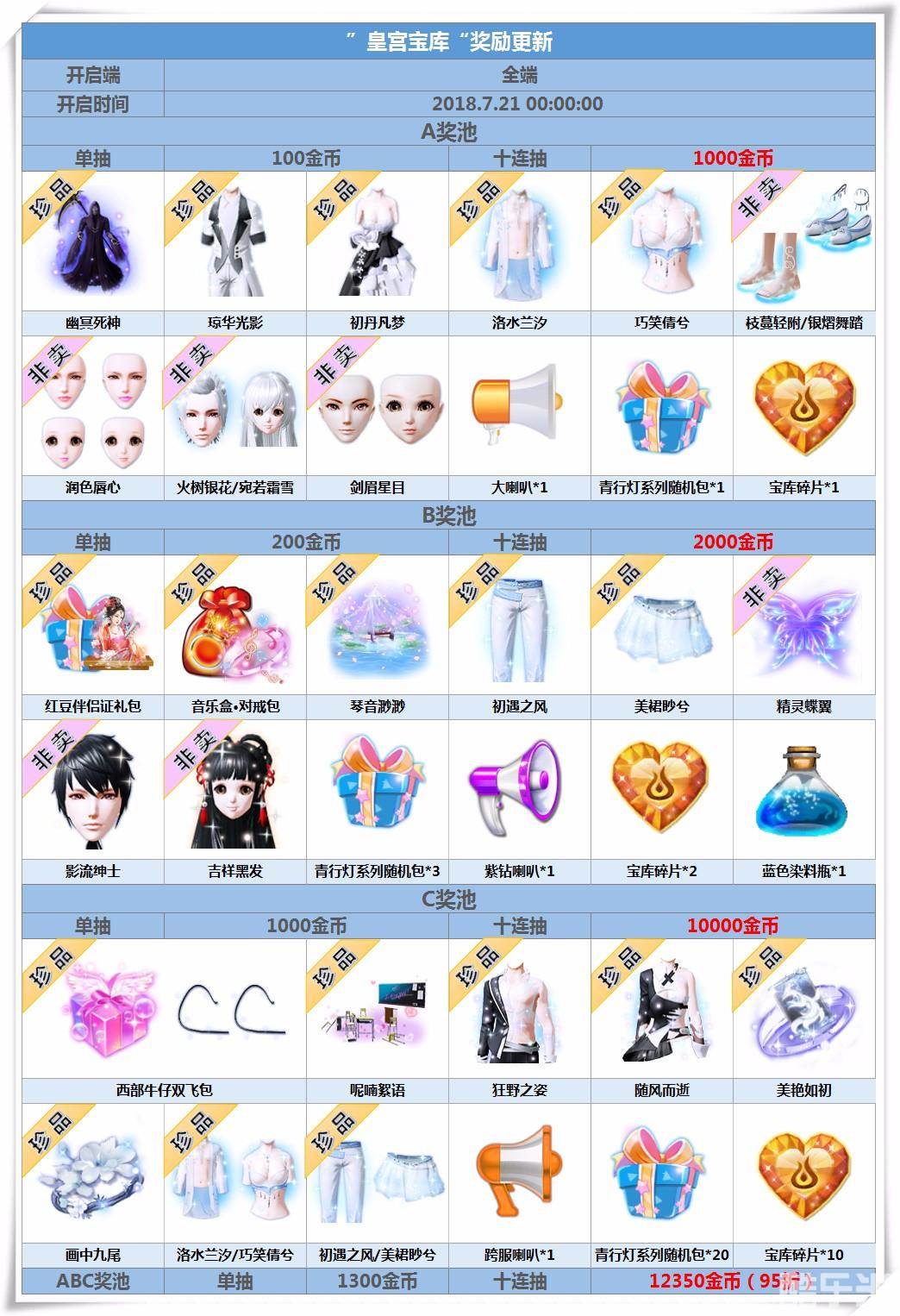 7.21起,7.21-7.27宝库三库首开双倍概率!7.28起恢复哦(奖励不更新)!
