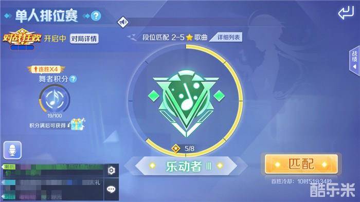 在对战中心中,除了可以在休闲局和欢乐局中休闲放松,还可以参加单人排位赛和双人排位赛。休闲局和欢乐局的比拼中,我就凭借“重在参与”的心态放松和听歌,但是在排位赛中,就不能掉以轻心了,这里是比拼舞技的地方,大家的技术如何,全靠这里的分数和级别一决高下了!