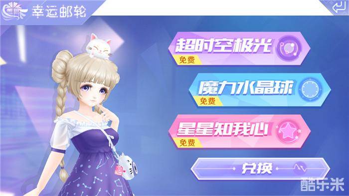大家进入QQ炫舞手游的主页面中,可以看到“幸运邮轮”,进入后可以看到,在幸运邮轮中有三个玩法,分别是“超时空极光”、“魔力水晶球”、“星星知我心”。在这三个环节中,玩家每天都可以获得一次免费机会,额外抽取需要花费金币、点券、钻石、友情币等。在超时空极光中,通过抽奖可以获得服饰材料兑换服饰道具所需要的“海洋之星”,当抽取到一定数量的时候,可以领取礼盒奖励哦!