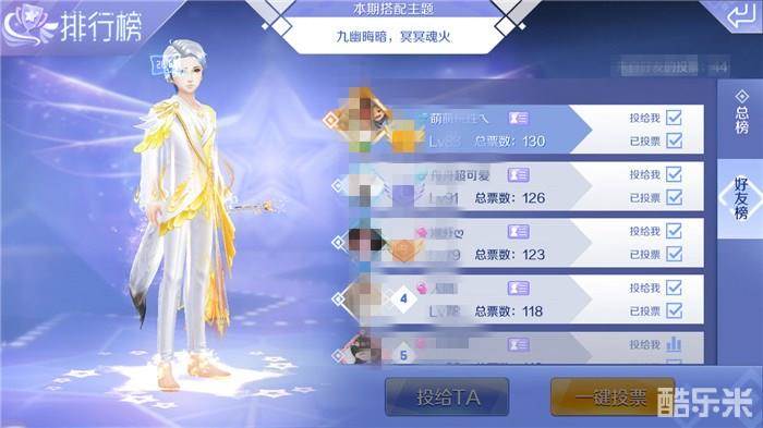 每一期服饰评选赛的搭配主题都有所不同,大家可以根据自己对搭配主题的理解来进行服饰搭配。大家除了当参赛选手以外,还可以做评委去给别的玩家投票哦。每次投票可以投10票,用完自己的票数后还可以等待票数恢复倒计时,倒计时结束,票数恢复到10票,大家可以尽情投票,根据投票次数还可以拿到礼包奖励,可以获得金币点券哦!