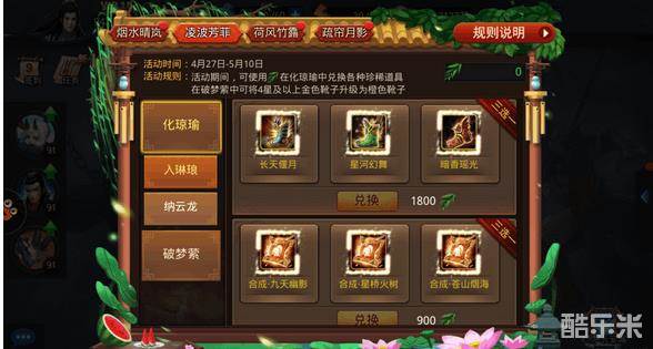 3、地图。地图玩法就是原来的转盘,换汤不换药而已,免费普通地图每天可以获得3个,也可以用舞风柳换3个,而高级地图每天可以充值30元获得6个,高级地图就相当于原来的真仙箱子,能开出圣鞋子头盔需要的合成材料。