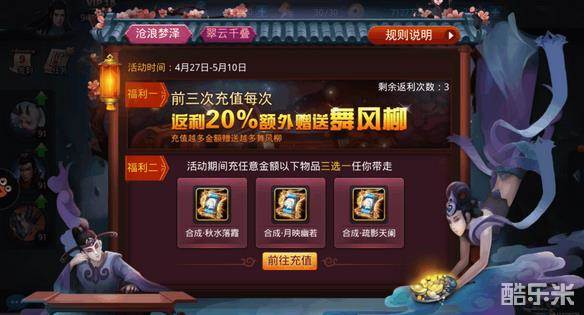 如果玩家经济稍微宽裕,就可以通过充值,前3次充值是可以享受20%的材料额外送。