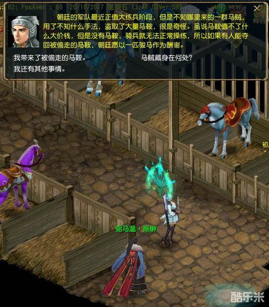 传说鸣凤堡附近最近来了大量马贼,据凤鸣堡的探马报告,马贼们经常在水帘洞一带活动。据说击败他们有一定几率会得到“偷走的马鞍”。把“被偷走的马鞍”交给双龙城马厩中的NPC 弼马温 可以获得坐骑奖励。