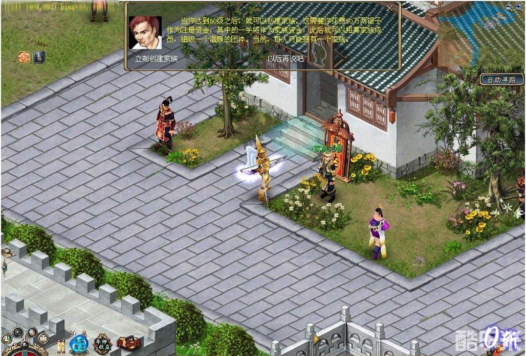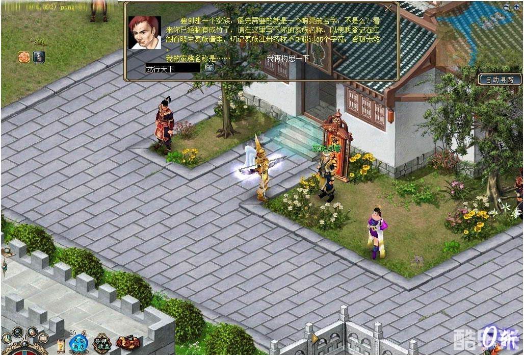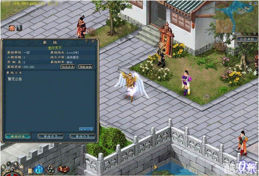 1、首先来到双龙城家族总管(406,390),他负责江湖上所有英雄的家族事务。