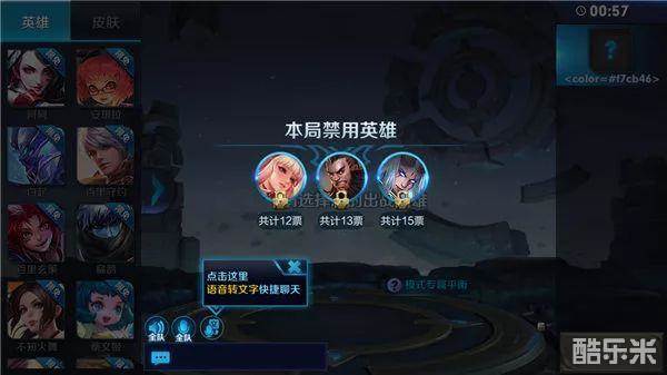 开局后可以投票禁选3名票数最高的英雄,值得一提的是,该模式当中系统会默认禁选掉部分英雄,如大乔、武则天、哪吒、雅典娜等这类技能较为特殊的英雄,而在投票禁选后就可以自由选择想使用的英雄。
