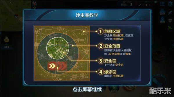 在对战过程中,除了要注意其他敌人之外,还要留意地图中的区域提示,每隔一段时间会出现沙暴弹,这时候我们就需要远离这些区域,否则会受到持续伤害。