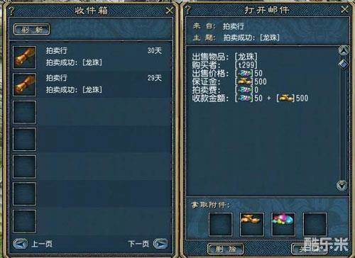成功售出商品后,所获金额将会以邮件附件的形式发送至卖者个人邮箱,可通过交易市场的邮件管理员(308,263)查收。需注意的是,邮箱中的邮件有效期为30天,过期后将无法收取邮件。