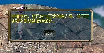 注册完新人物角色,在登陆游戏时,就会自动弹出“申请成为商人”界面