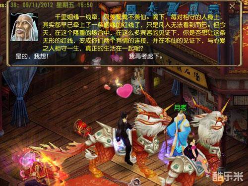 首先,司仪会召请一位最有资格为新人证婚的长者!这位证婚人不是高堂,不是亲友,更不是普普通通的媒婆,而是月老!没错,就是月老,还能有谁能比这位为世间所有有情人牵上红绳的上仙更有资格当新人证婚的呢?