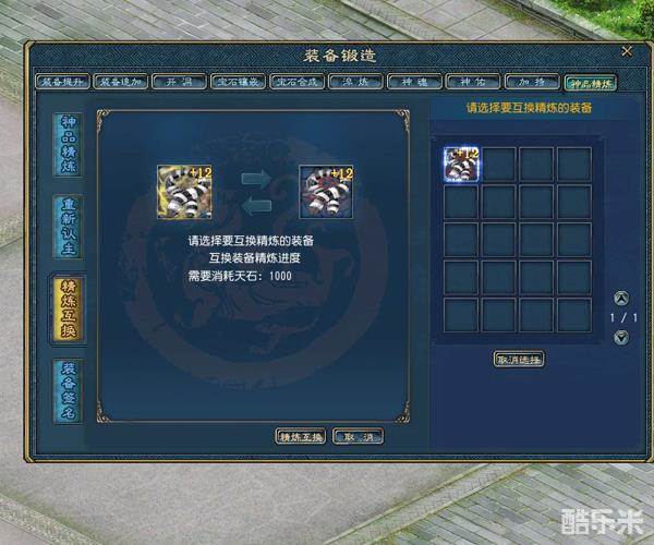 如果需要更换装备,但又舍不得之前装备上的神品精炼属性该怎么办呢?这时候,只要使用精炼互换功能,就能将新旧两件装备的精炼进度值互换。