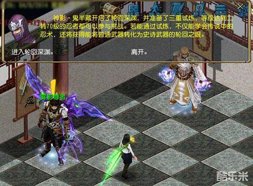遁迹江湖数十年的神影·鬼半藏现身四十九院,寻找继承人,通过其考验的忍者,不但可以修习鬼半藏的秘传忍术,还可以获得轮回之眼,使用轮回之眼,便能将忍刀转化为忍者史诗武器。
