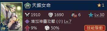 技能:1银苹果,可满技,嗨22%神攻,虽然没有天使兔子组合满技容易,不过节灵毋庸置疑。