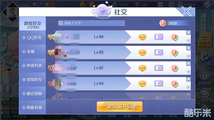 在游戏主页面中点击“好友”功能,可以进入游戏的社交系统,在这里可以添加游戏好友、与游戏好友互送友情币;也可以邀请好友一起来玩QQ炫舞手游;可以搜索添加在线的玩家、最近接触过的玩家作为好友等。如果想与游戏好友的关系更进一步的话,可以将对方添加为情侣、兄弟姐妹等亲属关系。想要将情侣升级为伴侣的童鞋,可以前去姻缘树举行仪式哦!