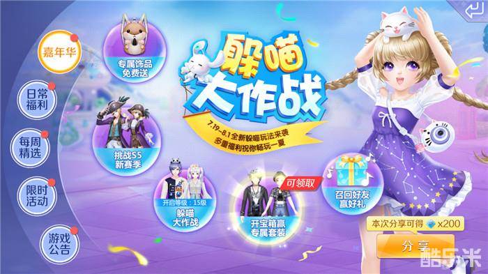 大家期盼已久的7月19日新版本终于如期而至了,在新版本新赛季中,游戏为大家准备了很多丰富多彩的活动,其中躲喵大作战可以说是新增的一大特色玩法,也让玩家感受到了童年捉迷藏游戏的欢乐。下面我们来看一下,在QQ炫舞手游中的躲猫猫的欢乐大作战如何开启吧!