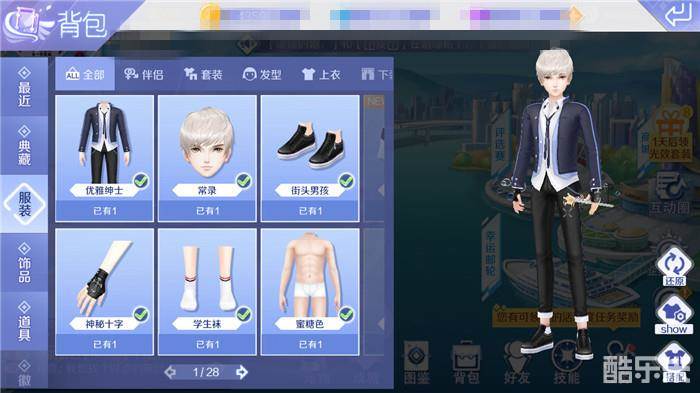 一次一次的抽奖,的确是浪费时间,十次一起抽,在心里总觉得获得服装配饰的概率稍大一点呢!其实平时我的运气并不怎么好,但是没想到这次在星星知我心里却人气爆发,除了金币和染料等道具,我还获得了一个发型、两双鞋子,简直太开心了!这个发型的名字也挺有意思的,叫“常录”,银色的短发非常帅气,搭配我的“优雅绅士”套装,加上刚刚获得的“街头男孩”鞋子,一身休闲装扮还是非常酷的!