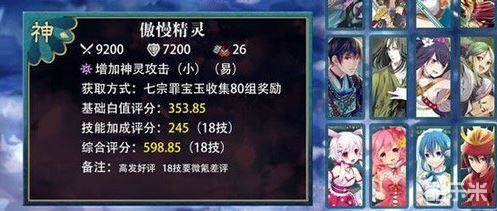 灵异阴阳录神灵节能式神分析之傲慢精灵