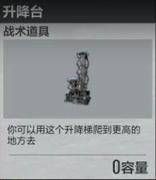 3、升降台:使用后可以放置一个升降梯,有2层阶梯,1层大概1个箱子高。限制携带1个,可以回收重复使用,回收需要2秒,注意身边的敌人哦!