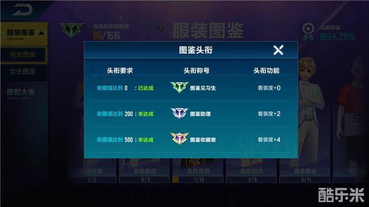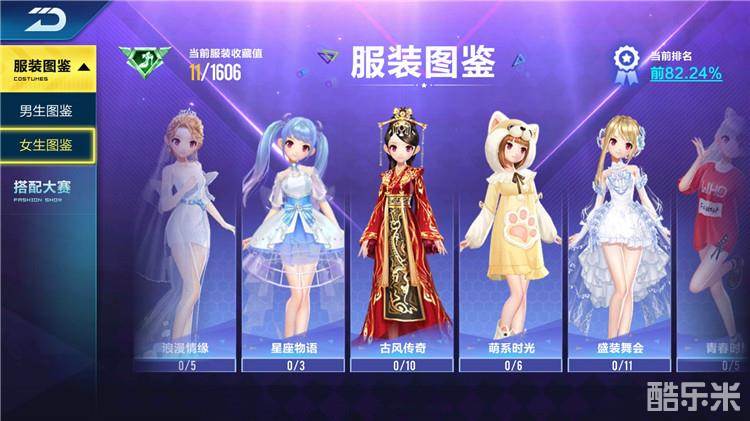 服装图鉴顾名思义就是将游戏内所有的时装做了梳理,把属于同一设计风格的时装分成一大类,然后以主题系列的排布呈现给赛车手们。而在服饰图鉴下还贴心的划分了男生图鉴和女生图鉴,便于赛车手们更快的对号入座。