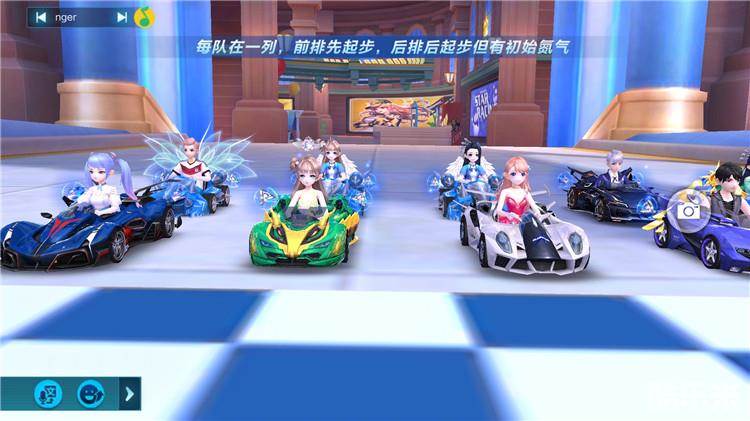 超能竞速赛采用的是10人同屏,两两一组的形式对抗。组员之间并不是在同一起跑线起跑,而是分为前排和后排的位置关系。前排玩家率先起跑,常规的超级起步+断位双喷的开局是必不可少的。而后排玩家虽然后起步,但是拥有初始氮气。为了尽快缩减与前排玩家的距离,玩家可以在超级起步后直接释放氮气,尽快拾取技能,也可以根据实际情况,战略性地通过第一个弯道后直接使用CWW瞬间超越对手。