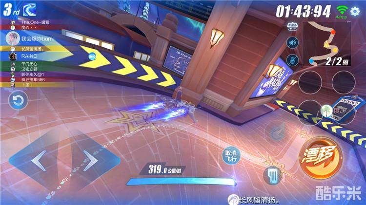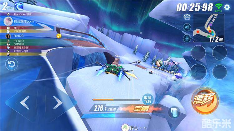 赛车将变成飞机,沿着道路自动加速飞行,没有碰撞,持续腾空飞行一段时间。对一些玩家跑密集弯道,如秋之物语、侏罗纪公园、11城的连续近道等,会有很大程度的帮助。不过玩家需要注意的是,飞行技能不能享受加速带的加速效果,所以一定要注意释放时机,避免适得其反。
