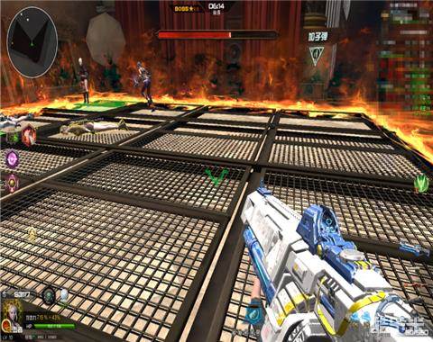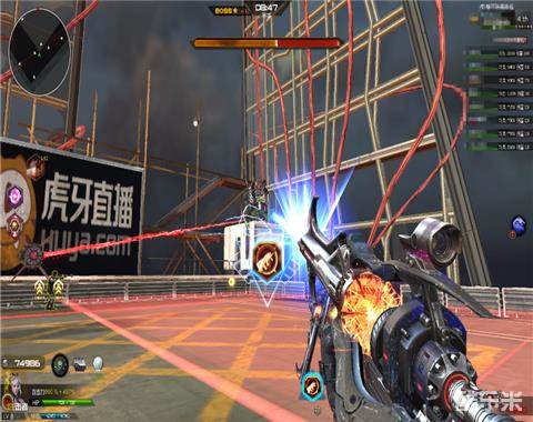同样老Z跳到对角的还有一个全屏技能,两道激光+两块红色区域,玩家需要根据伤害提示来回躲避,但是目前为止这个对角技能几乎无法盲躲(下图)。