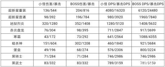挑战是超新星最强势的模式,虽然经历了一次调整,超新星仍然是碾压其他挑战神器的存在。我们来看下调整后的超新星和其他挑战神器的伤害&输出能力对比。