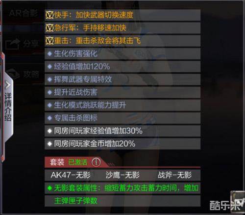 ◆战斧-无影不仅拥有竞技模式属性,如快手、急行军,这些属性在爆破团队等模式中能发挥出很大作用。它还拥有生化增益属性,生化伤害强化可以让我们刀僵尸时更加暴力,生化跳跃能力提升可以增强我们的逃跑能力。另外增加经验、金币值,专属击杀图标等属性无影战斧也是一个不少,所以说在技能这方面,无影战斧是无可挑剔的。