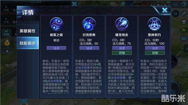 东皇太一作为坦克,不仅拥有很强的生存能力,更有着超强的战场控制,尤其大招的点控,让所有英雄都闻风丧胆,下面就从技能、出装和打法技巧这些方面,为大家详细介绍东皇太一。