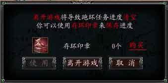 玩家身上有跑环任务时,如果下线,系统将提示其环数会被清空是否下线。仍然下线的话,玩家的环数信息将被清零。玩家可以使用存环印章来保存跑环信息,存环印章可以在随身商城中买到。