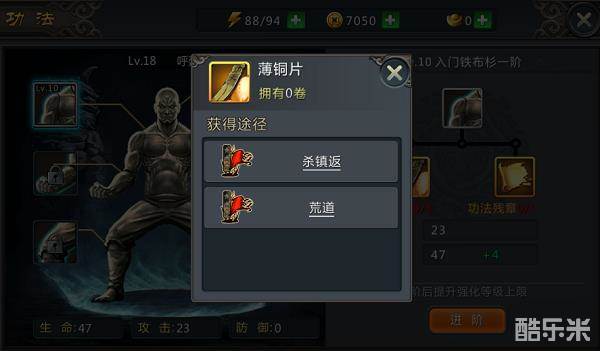 当功法提升到一定程度,需要搜集对应的练功材料才能解锁下一阶的功法。