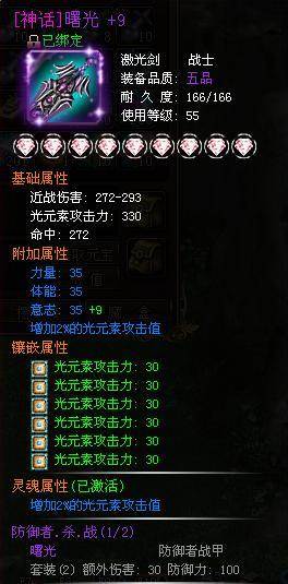 注:使用绑定材料会使装备永久绑定,且不可解绑,下图为装备精炼完毕的属性: