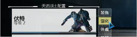 2、 在战甲或者武器界面右侧选择“升级”,即可配备振幅晶体到战甲及武器