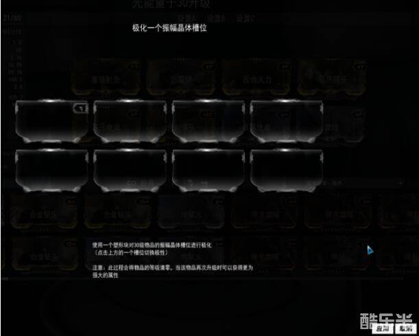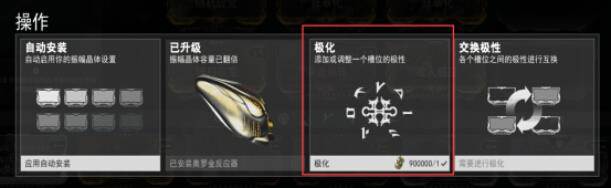 极化:30级之后使用福马可将之极化,极化后装备变为0级并且多加一个极化槽,MOD插在对应的极化槽上消耗的MOD点减半,极化没有次数限制。