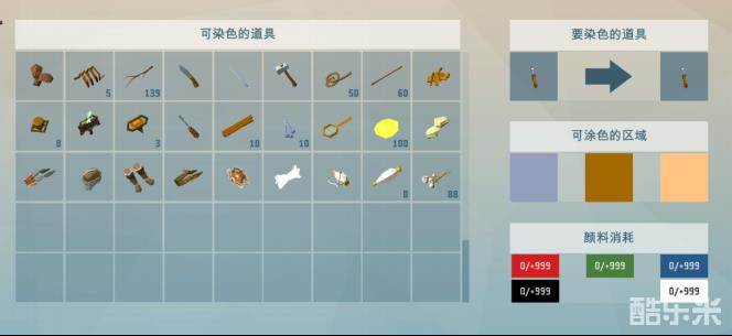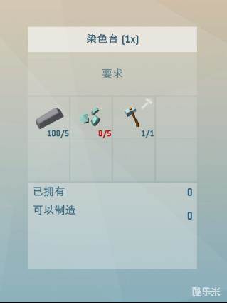 当染色台制成后,玩家可以靠近染色台,通过点击鼠标右键实现与染色台的互动,互动界面如下图所示。