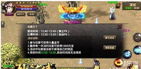 任性PK,不服就干!以爽快PK为特色的《烈焰龙城》为广大竞技玩家开设了超精彩的野外无阵营乱斗玩法-称霸天下,这是专为龙城勇士准备的一个展示自己技术和实力的舞台。每天12:40-12:50为称霸天下准备阶段,玩家可通过“活动-称霸天下”点击前往快捷传送至NPC处,摩拳擦掌准备技能观察对手,在准备阶段是可自由进出!12:50-13:20为战斗阶段,入口关闭,所有已在地图的玩家均为全体PK模式,可以自由战斗,该活动不会掉装,可随意杀戮,在这里人人都是敌人。战斗阶段若死亡则自动退出活动,在活动结束前最后1名生存下来的玩家才会取得最终的胜利!即可独享1000元宝大奖哦!