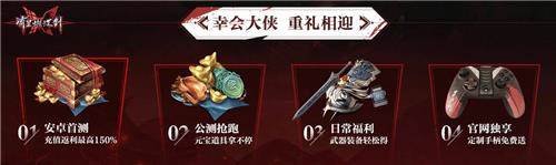 此次内测持续8天,安卓用户充值可在公测时获得120%的返还,若累计登录天数达到2天、7天,返还比例将会对应提升至135%、150%。首充奖励为剑、枪、拳、锤四把紫色武器四选一,这一奖励同样会在公测保留。