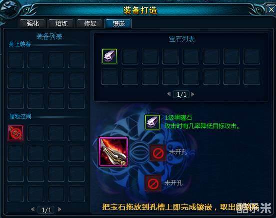 3. 宝石镶嵌和操作极为方便:把宝石拖放到孔槽上即完成镶嵌,取出即摘除,没有任何消耗,玩家到达60级后就能够进行宝石镶嵌;