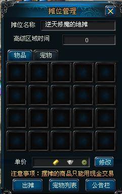 登录上背包中的物品,摆上合适的价格,并在公告栏中填上广告词,就可以开卖了。
