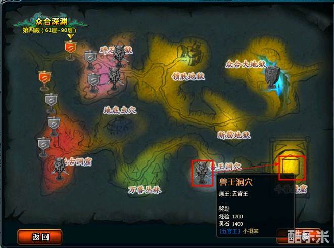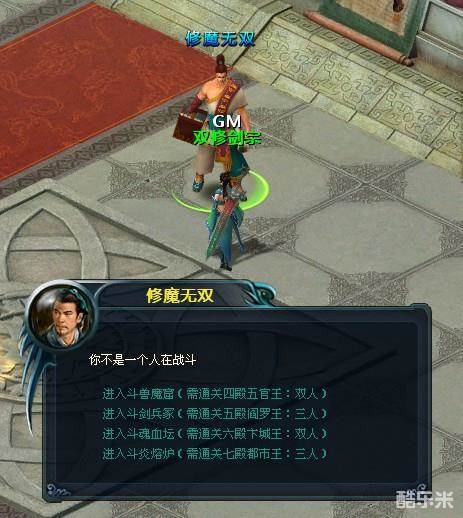 当你的等级达到50级并且通关了四殿阎王”五官王”即可挑战第一个双人副本:斗兽魔窟